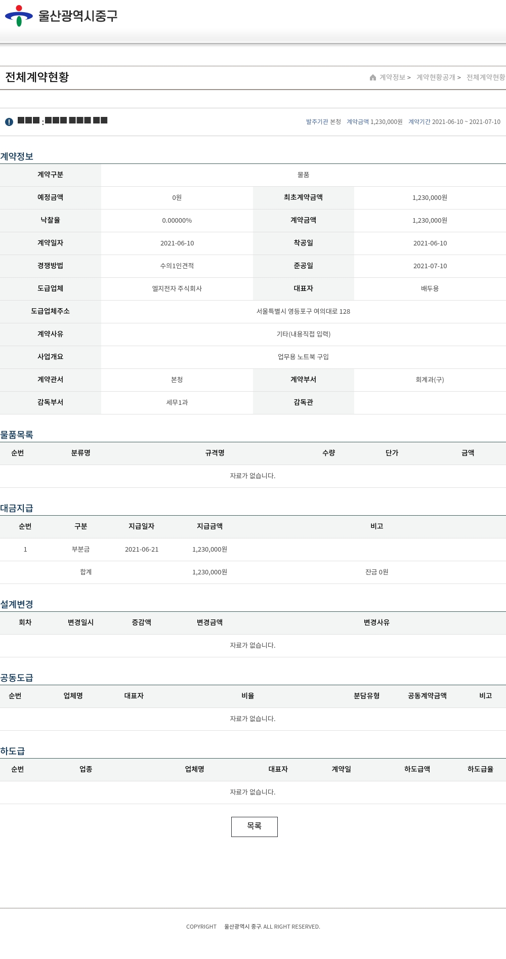 | 예정금액 | 0원 | 최초계약금액 | 1,230,000원 |
