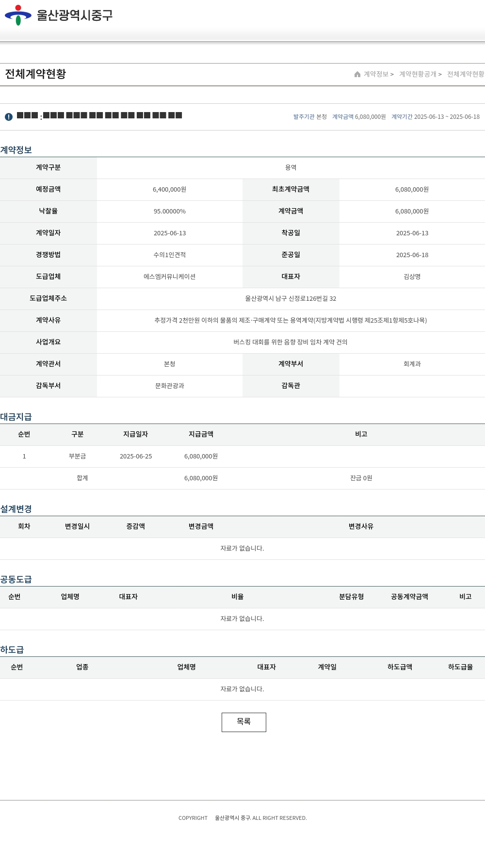 | 예정금액 | 6,400,000원 | 최초계약금액 | 6,080,000원 |