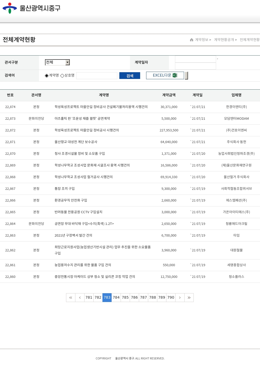 | 22,773 | 본청 | 울산 경상좌도 병영성 수목 정비 | 970,000 | `21 07/05 | 흥진조경건설(주) |