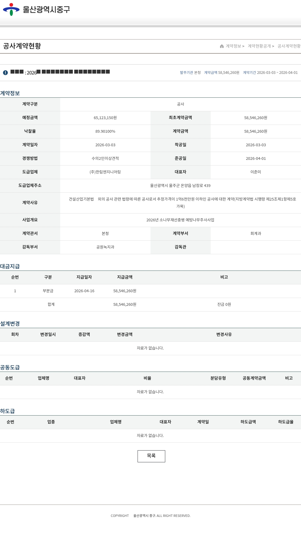 | 예정금액 | 65,123,150원 | 최초계약금액 | 58,546,260원 |