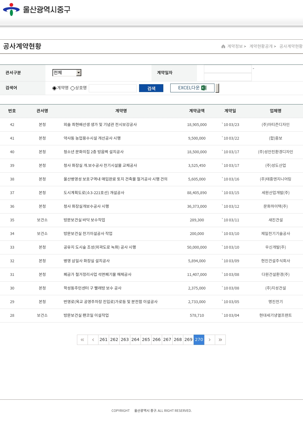 | 35 | 보건소 | 방문보건실 바닥 보수작업 | 289,300 | `10 03/11 | 새진건설 |