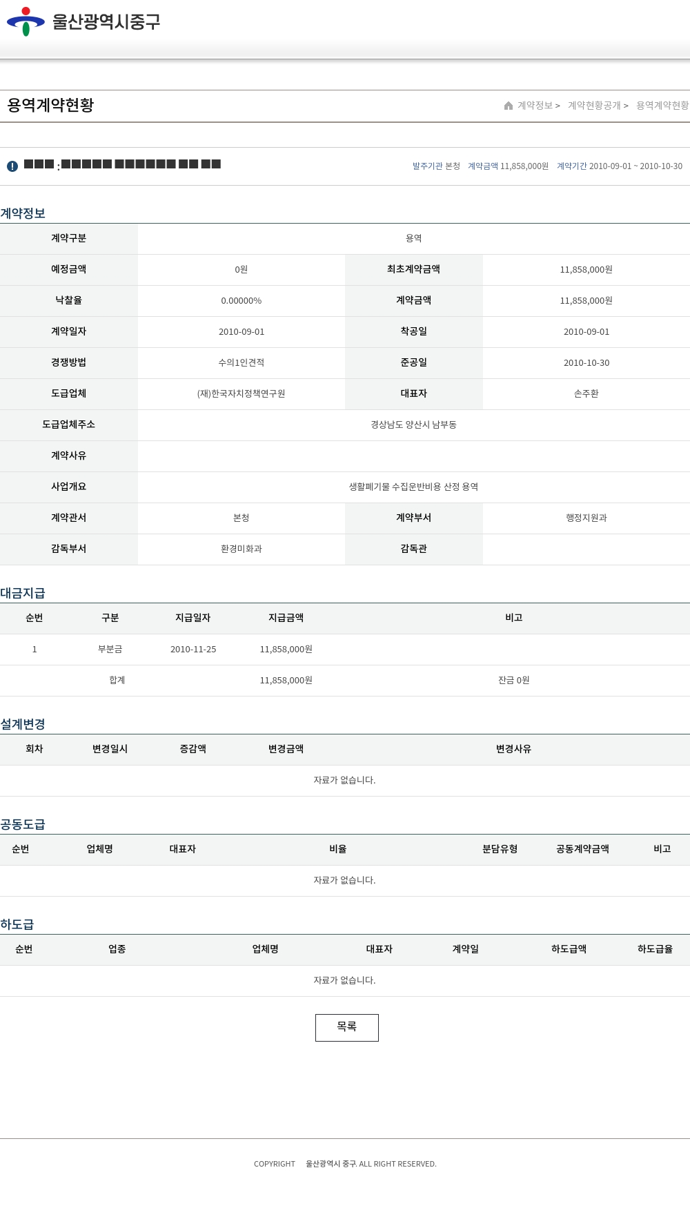 | 낙찰율 | 0.00000% | 계약금액 | 11,858,000원 |