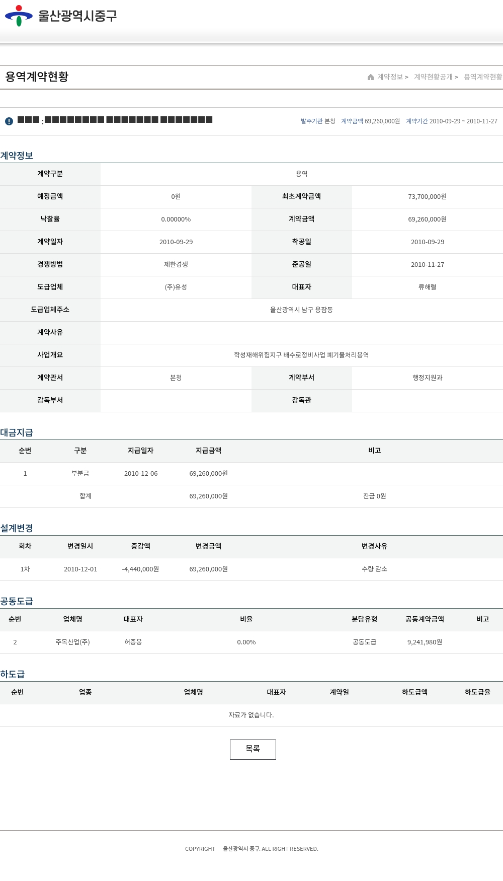 | 낙찰율 | 0.00000% | 계약금액 | 69,260,000원 |