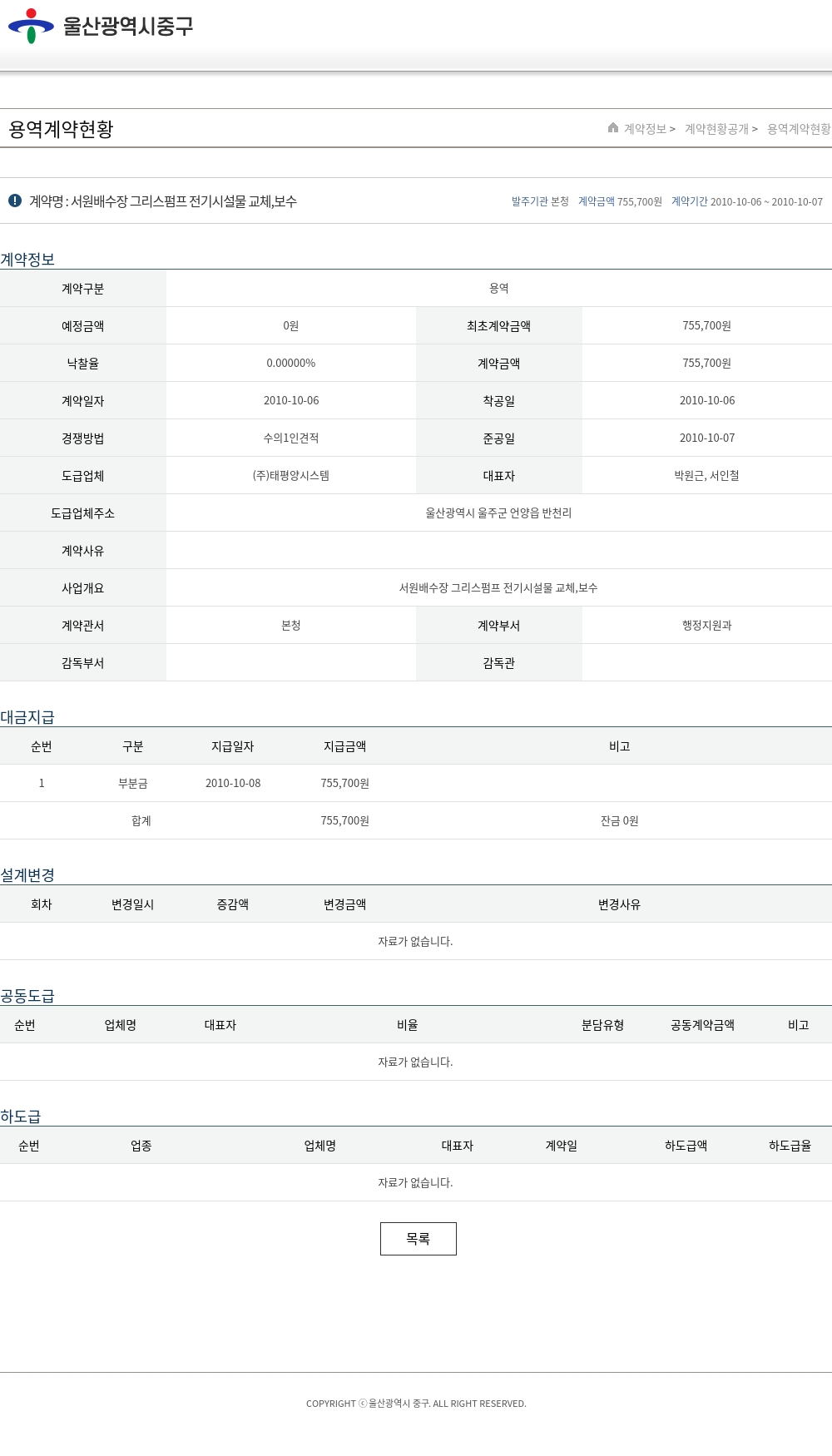 | 예정금액 | 0원 | 최초계약금액 | 755,700원 |
