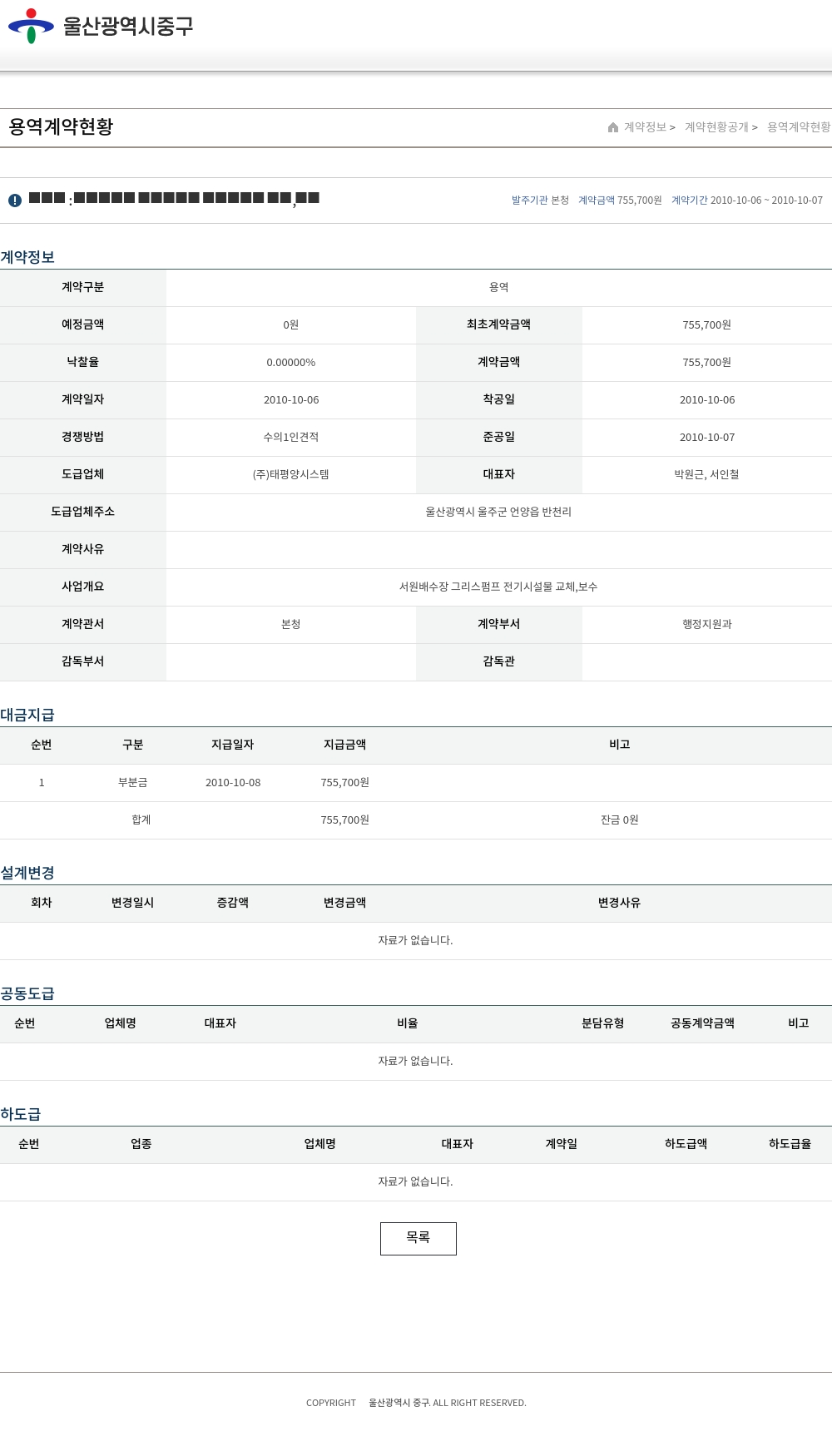 | 예정금액 | 0원 | 최초계약금액 | 755,700원 |