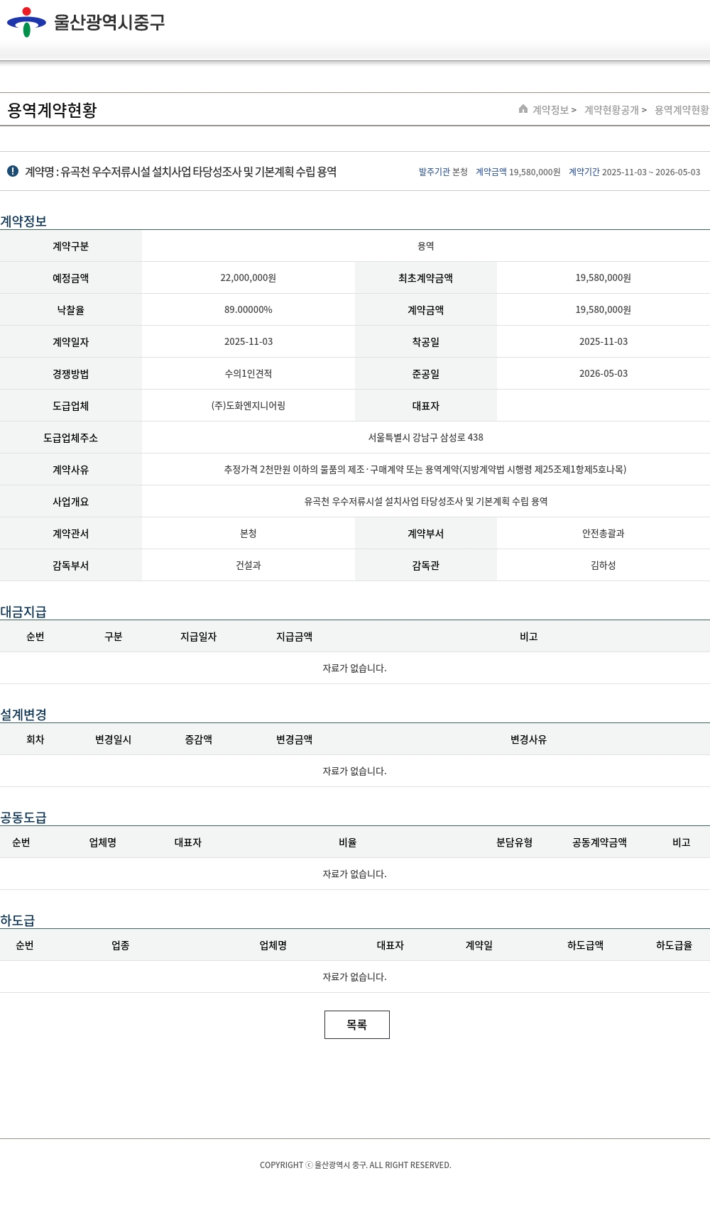 | 예정금액 | 22,000,000원 | 최초계약금액 | 19,580,000원 |