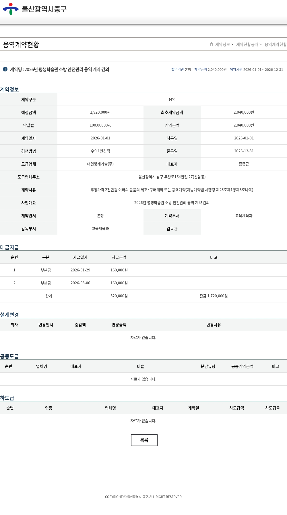 | 낙찰율 | 100.00000% | 계약금액 | 2,040,000원 |