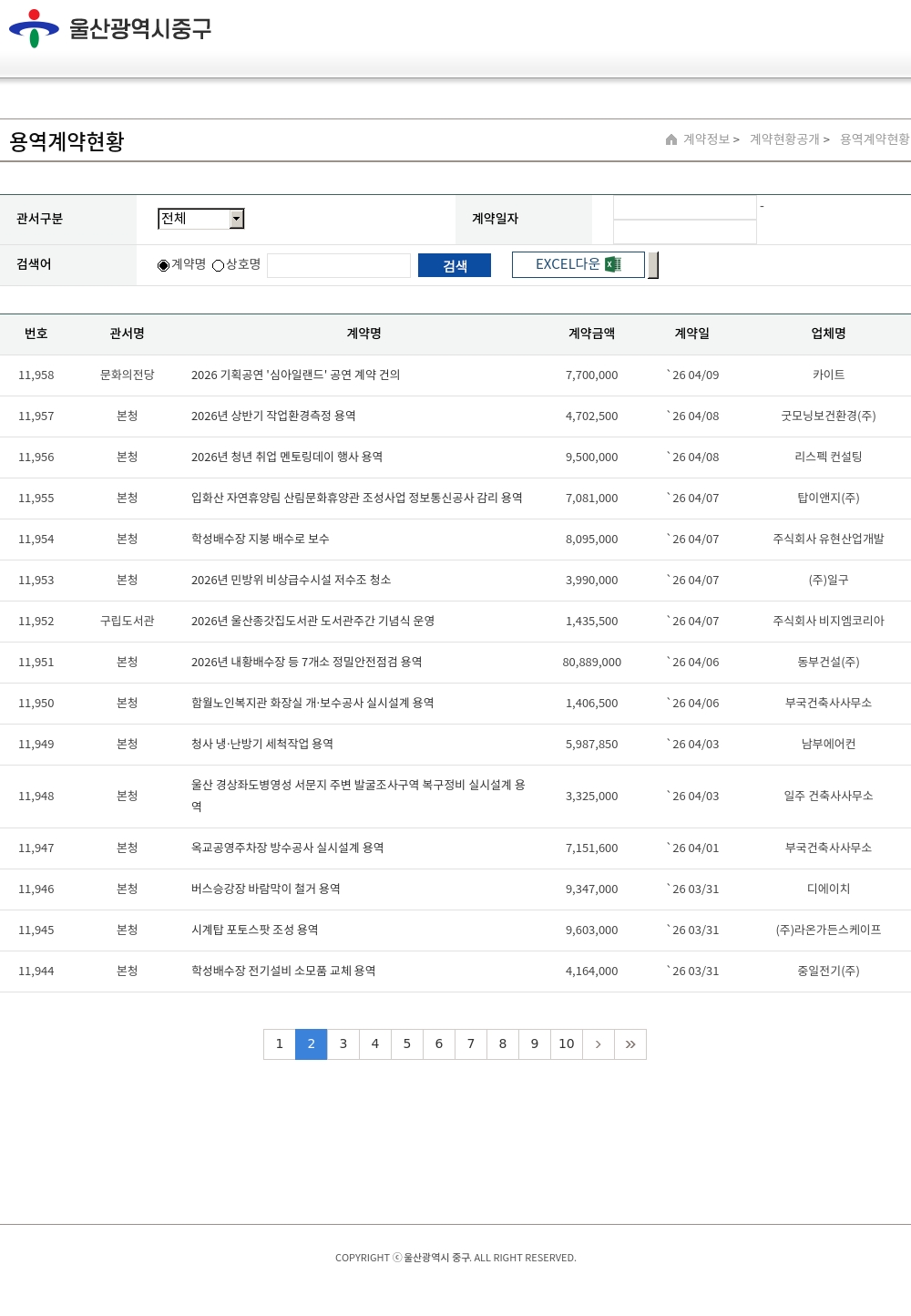 | 11,880 | 구립도서관 | 중구구립도서관 누리집 기능 개선 사업 계약 건의 | 15,750,000 | `26 03/04 | 주식회사 스토리 |