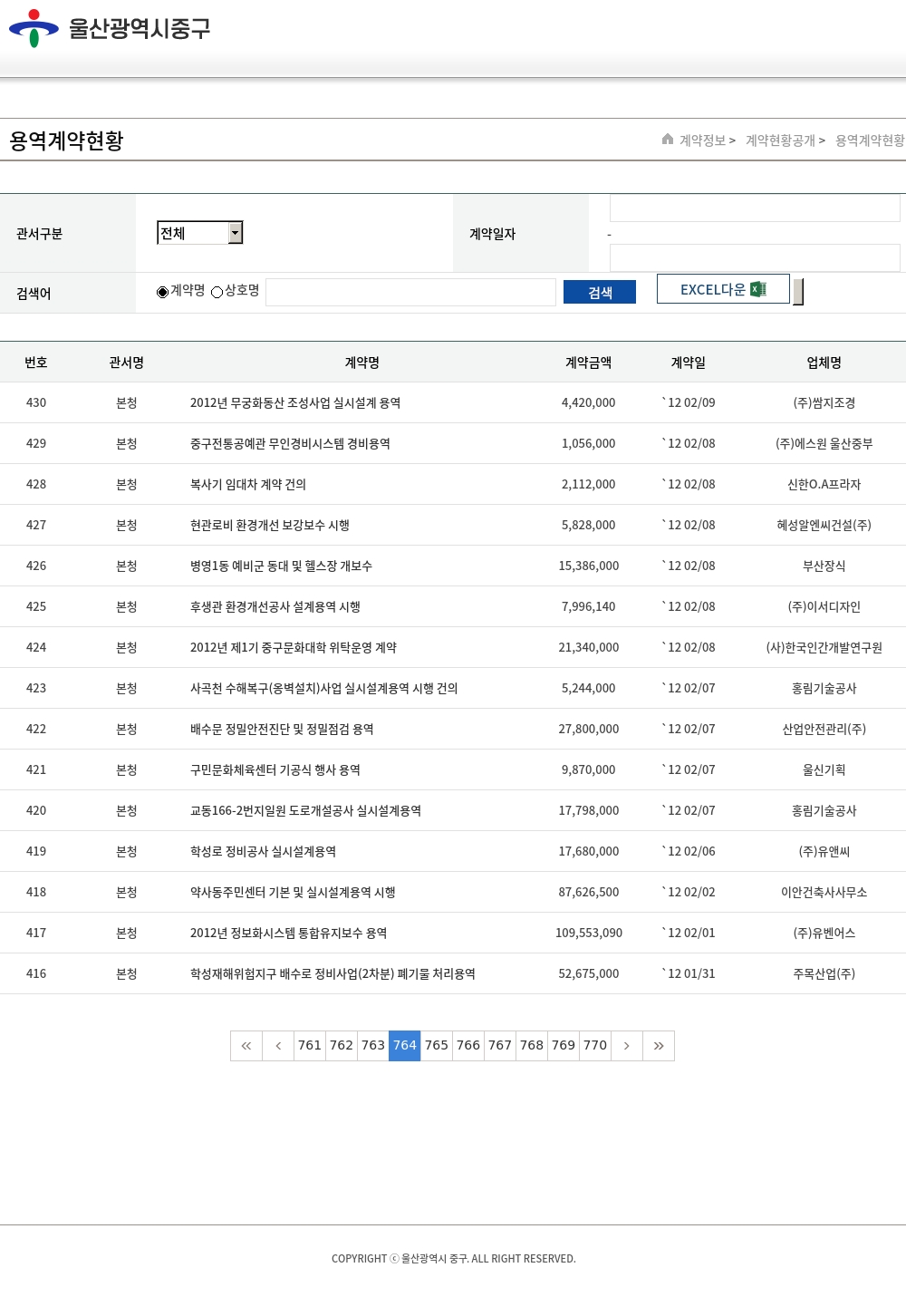| 번호 | 관서명 | 계약명 | 계약금액 | 계약일 | 업체명 |