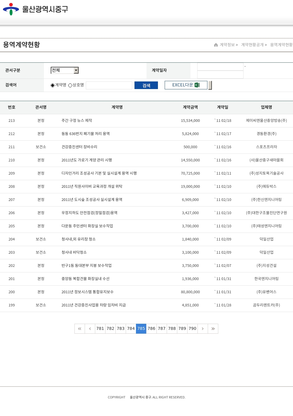 | 번호 | 관서명 | 계약명 | 계약금액 | 계약일 | 업체명 |