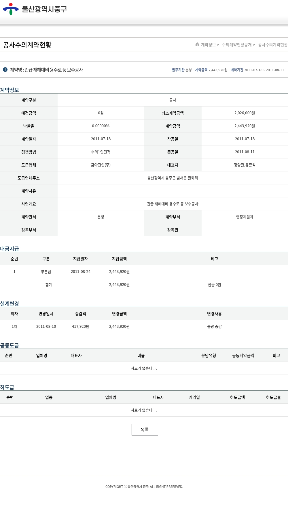 | 경쟁방법 | 수의1인견적 | 준공일 | 2011-08-11 |