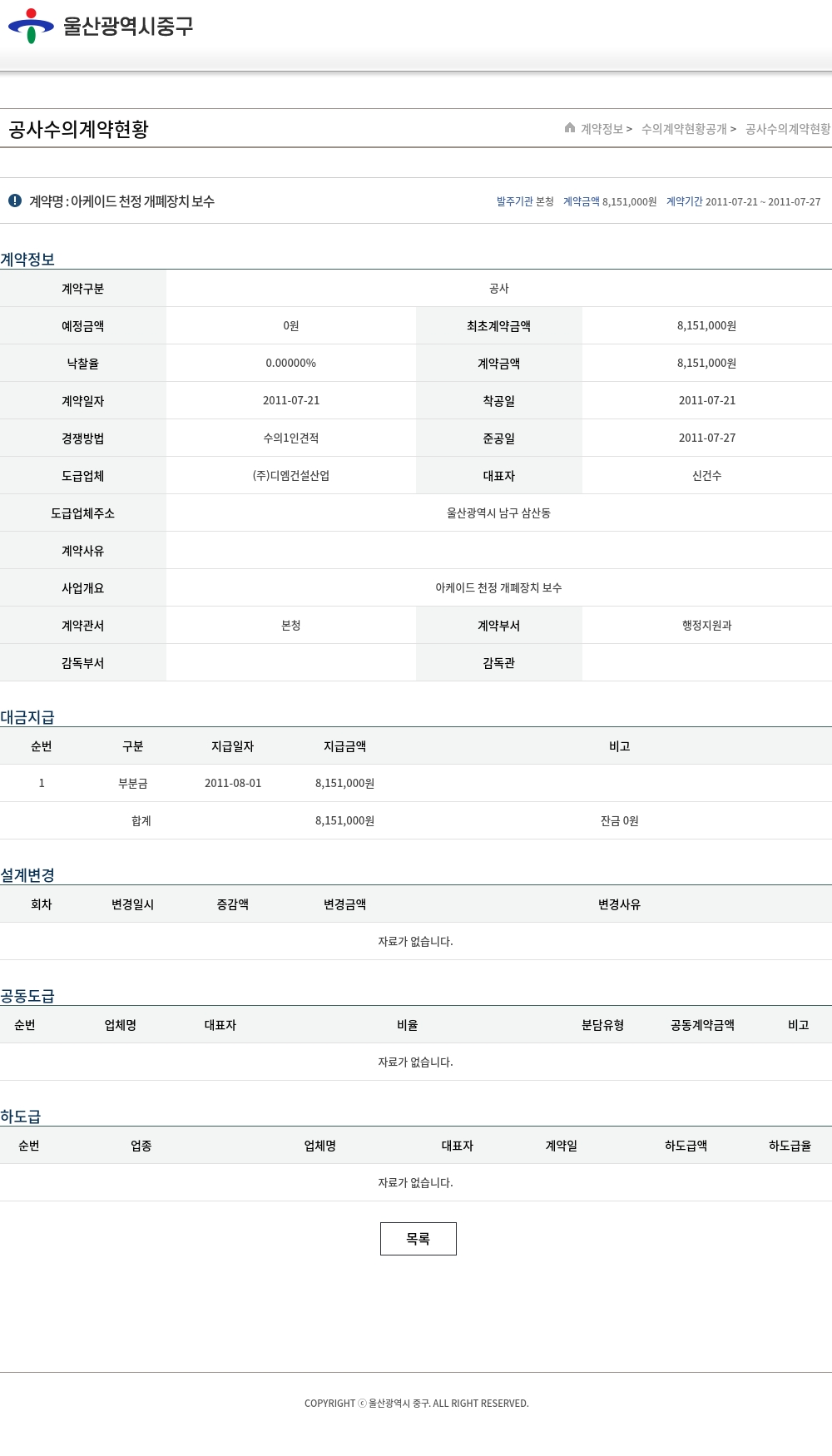 | 낙찰율 | 0.00000% | 계약금액 | 8,151,000원 |