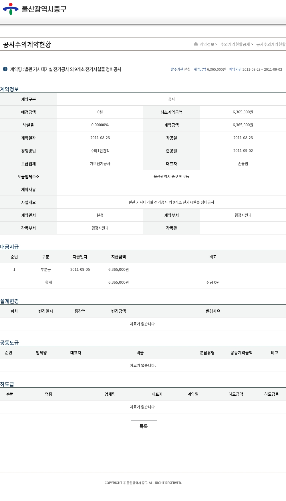 | 낙찰율 | 0.00000% | 계약금액 | 6,365,000원 |