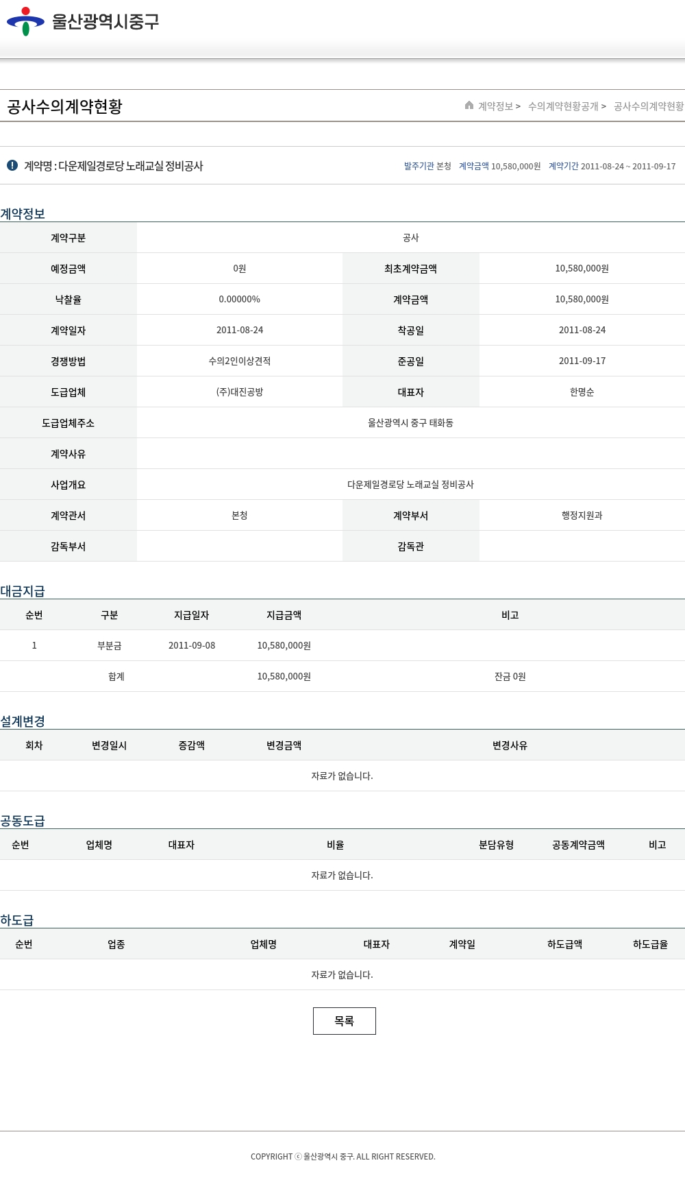 | 낙찰율 | 0.00000% | 계약금액 | 10,580,000원 |