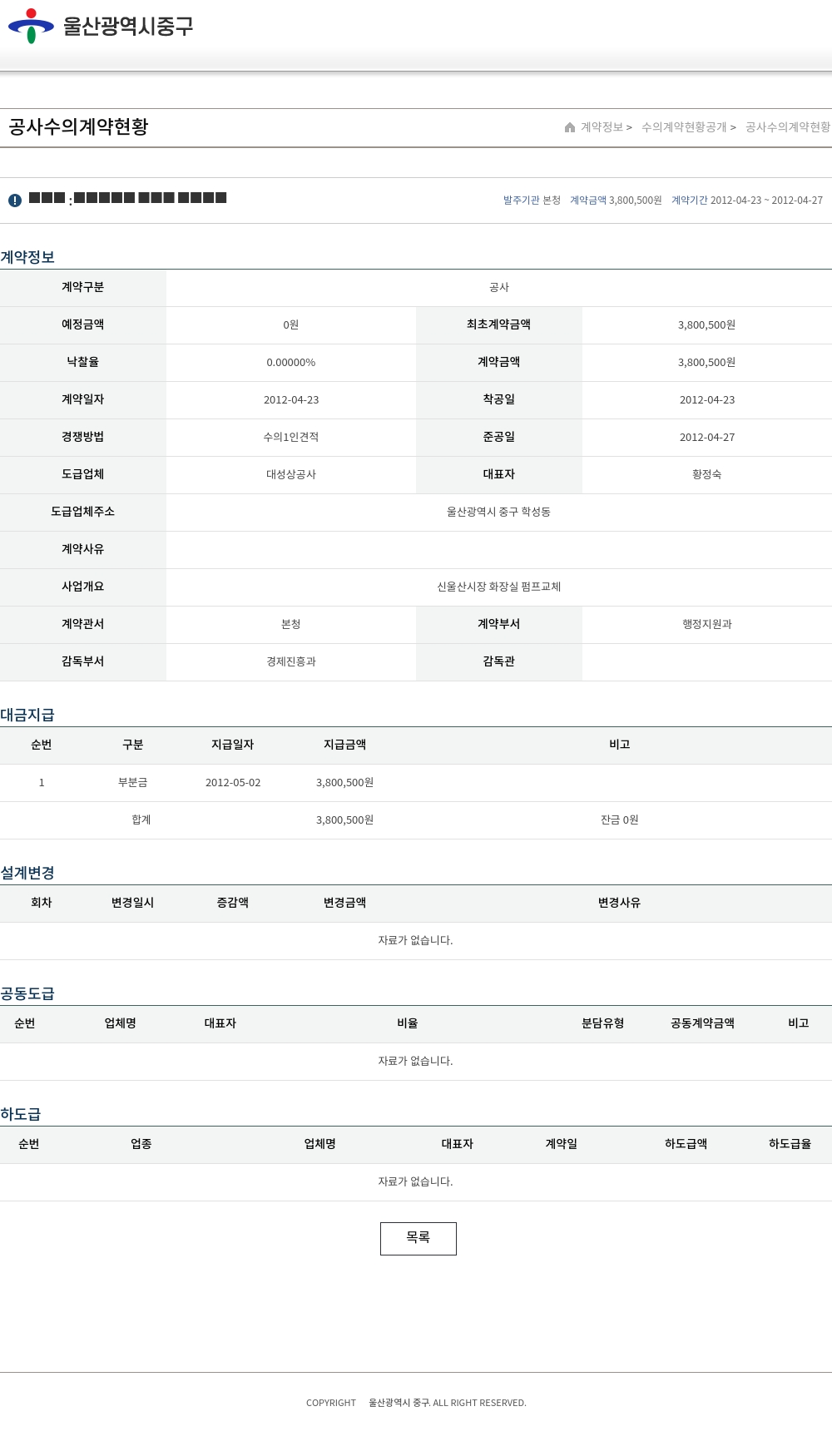 | 예정금액 | 0원 | 최초계약금액 | 3,800,500원 |