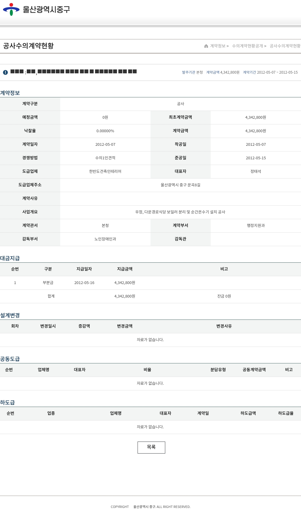 | 낙찰율 | 0.00000% | 계약금액 | 4,342,800원 |
