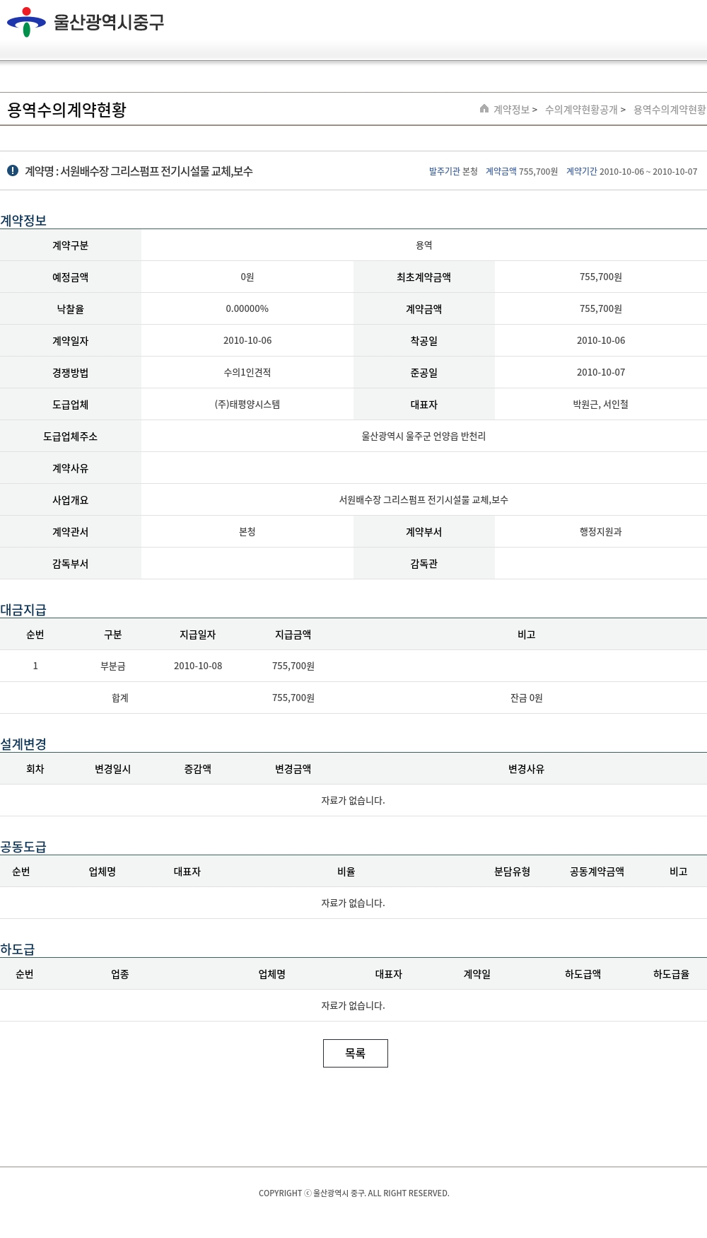 | 예정금액 | 0원 | 최초계약금액 | 755,700원 |