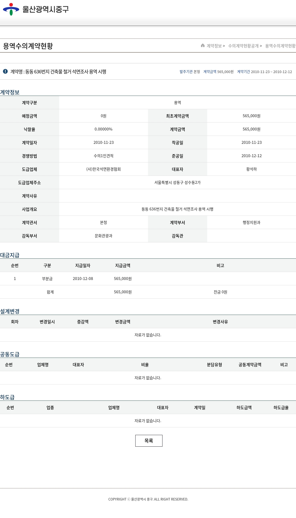 | 낙찰율 | 0.00000% | 계약금액 | 565,000원 |