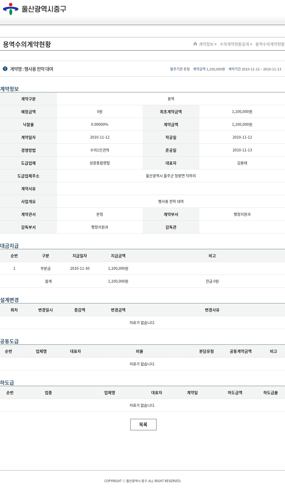 | 낙찰율 | 0.00000% | 계약금액 | 1,100,000원 |