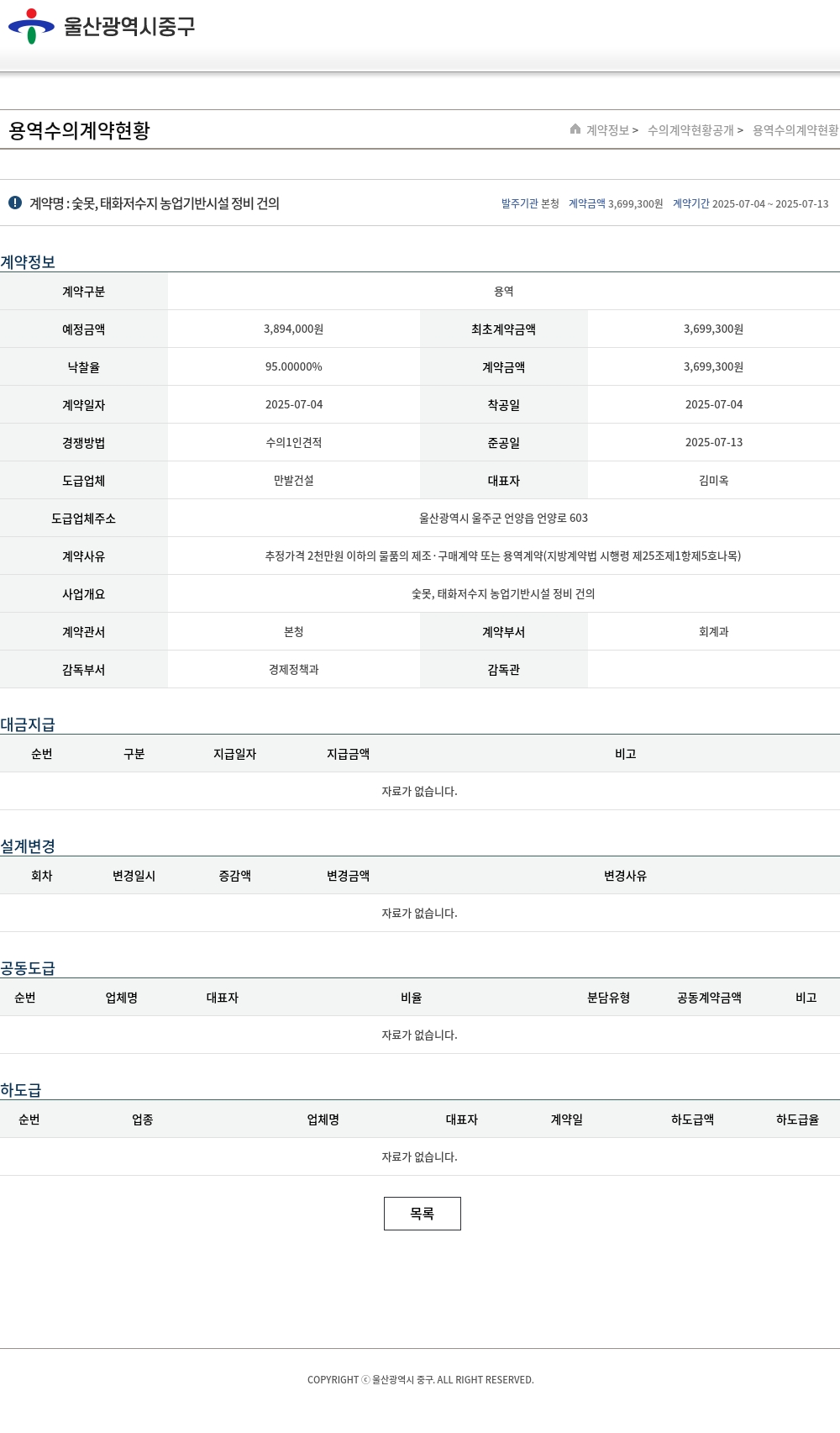 | 경쟁방법 | 수의1인견적 | 준공일 | 2025-07-13 |