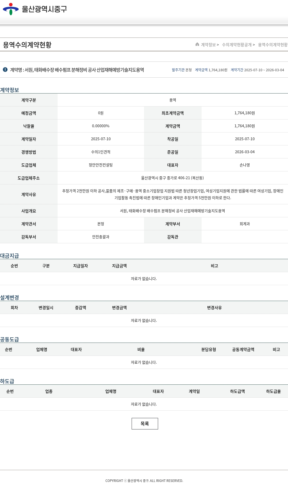 | 낙찰율 | 0.00000% | 계약금액 | 1,764,180원 |