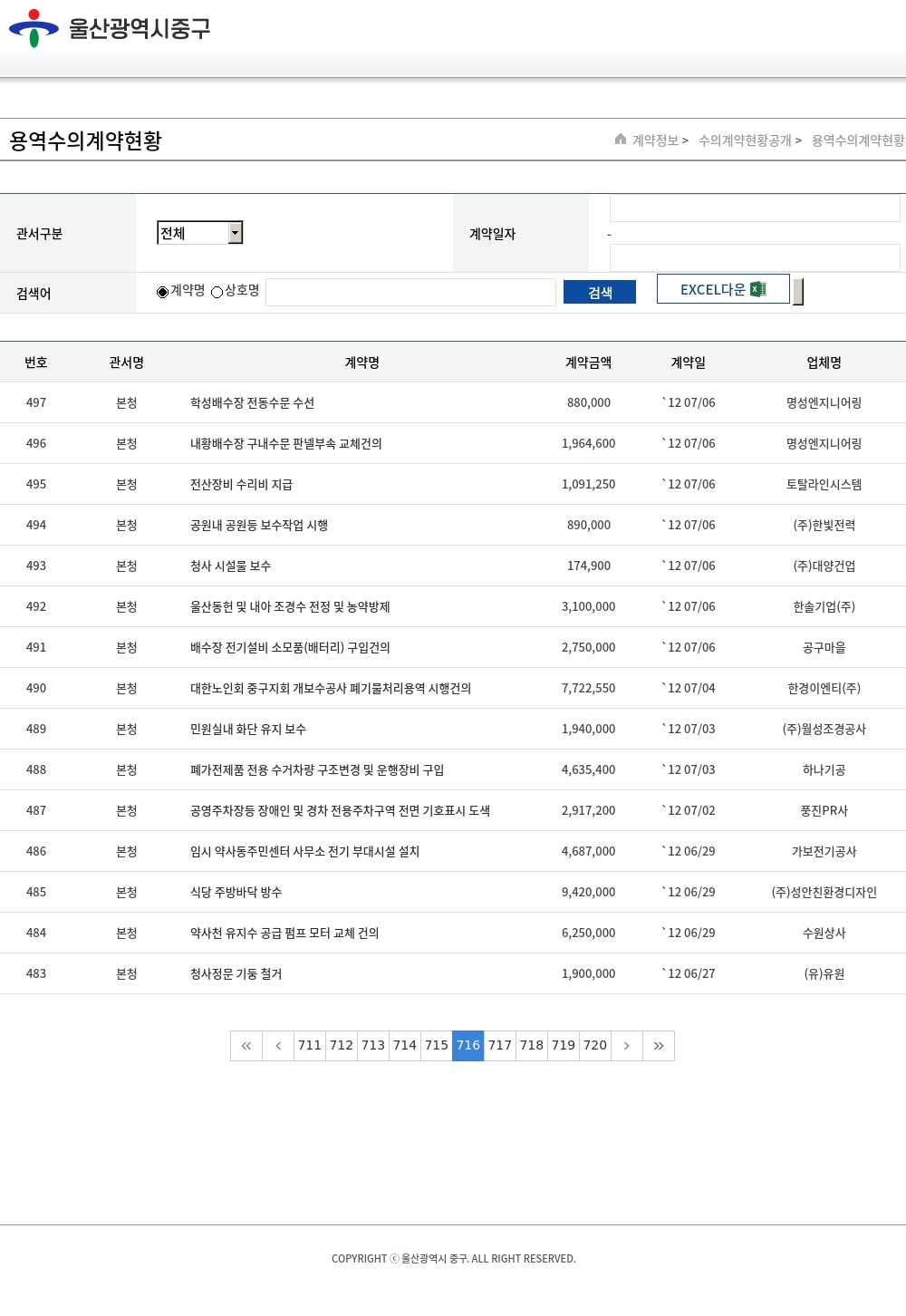 | 110 | 본청 | 행사용 천막 대여 | 1,100,000 | `10 11/12 | 성광종합렌탈 |