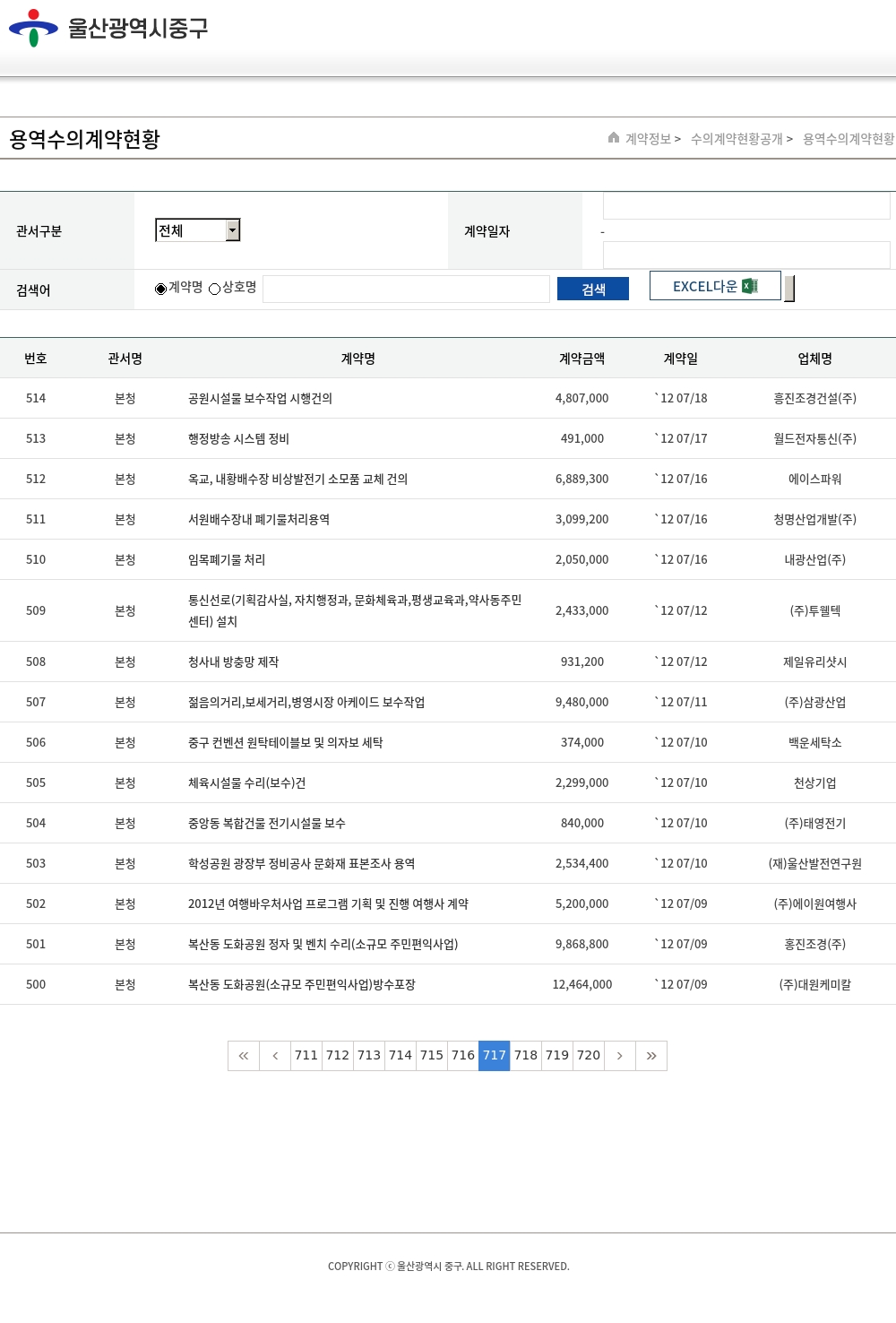 | 번호 | 관서명 | 계약명 | 계약금액 | 계약일 | 업체명 |