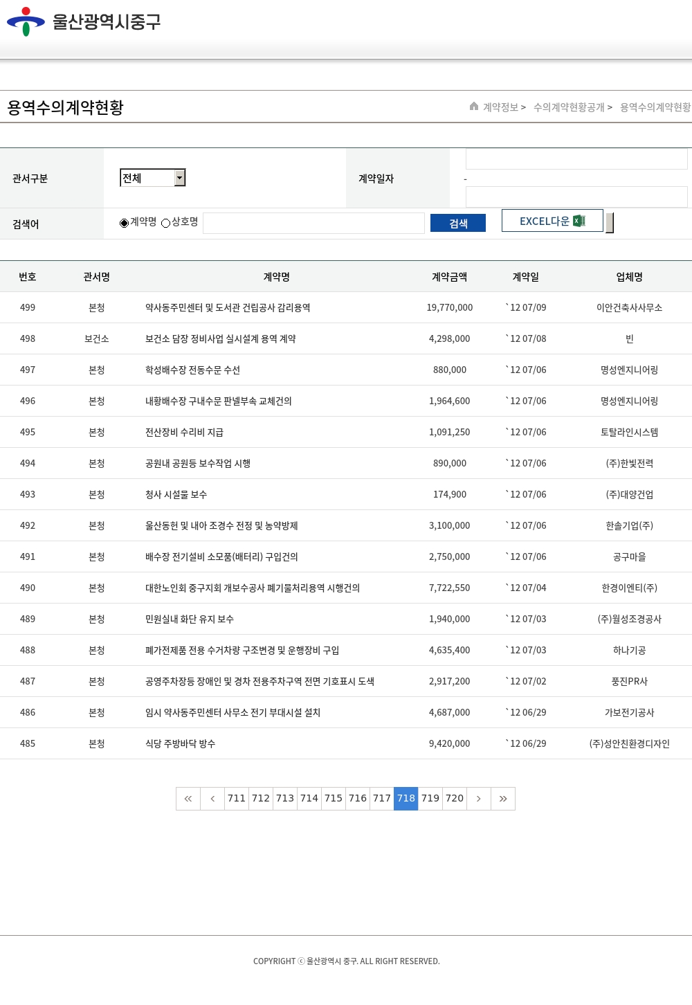 | 69 | 보건소 | 청사 물탱크 청소 | 450,500 | `10 04/29 | 대성크린텍 |