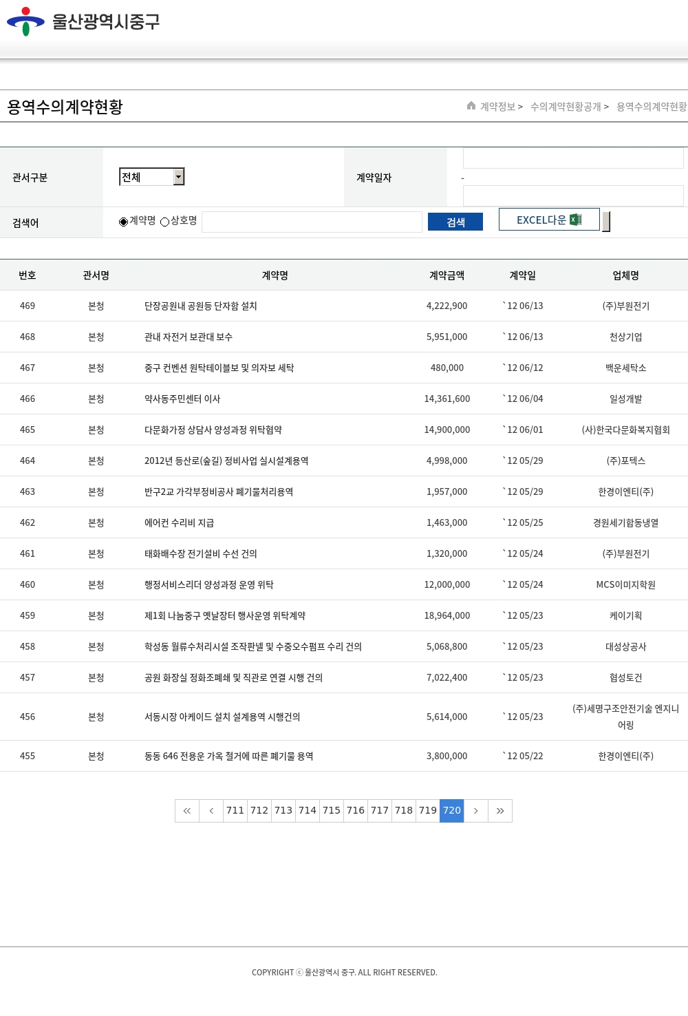 | 번호 | 관서명 | 계약명 | 계약금액 | 계약일 | 업체명 |