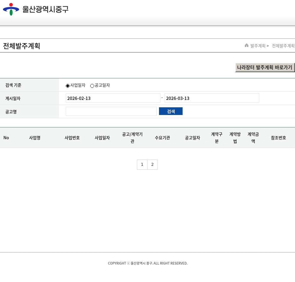 | 28 | 2026년 직원 단체보험 가입 | R25DD20443058 | 2025/11/18 | 울산광역시 중구 | - | - | | 일반경쟁 | - | |