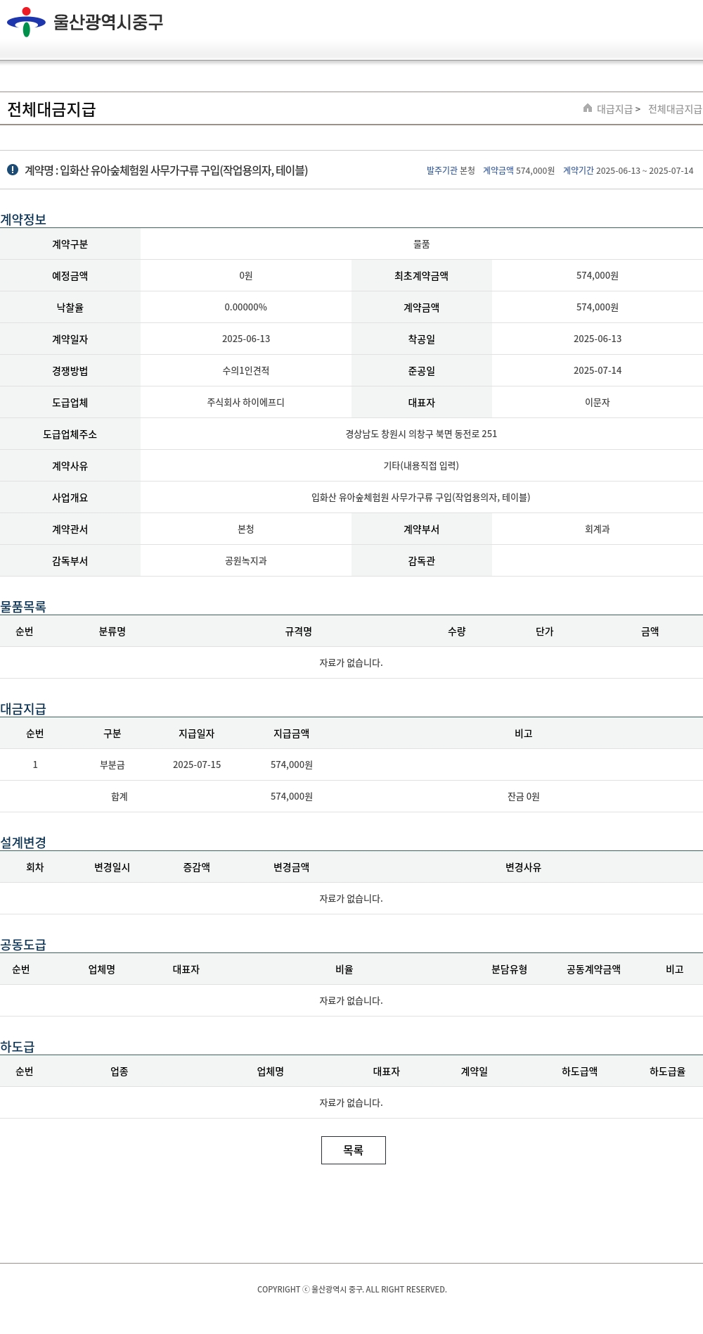 | 낙찰율 | 0.00000% | 계약금액 | 574,000원 |