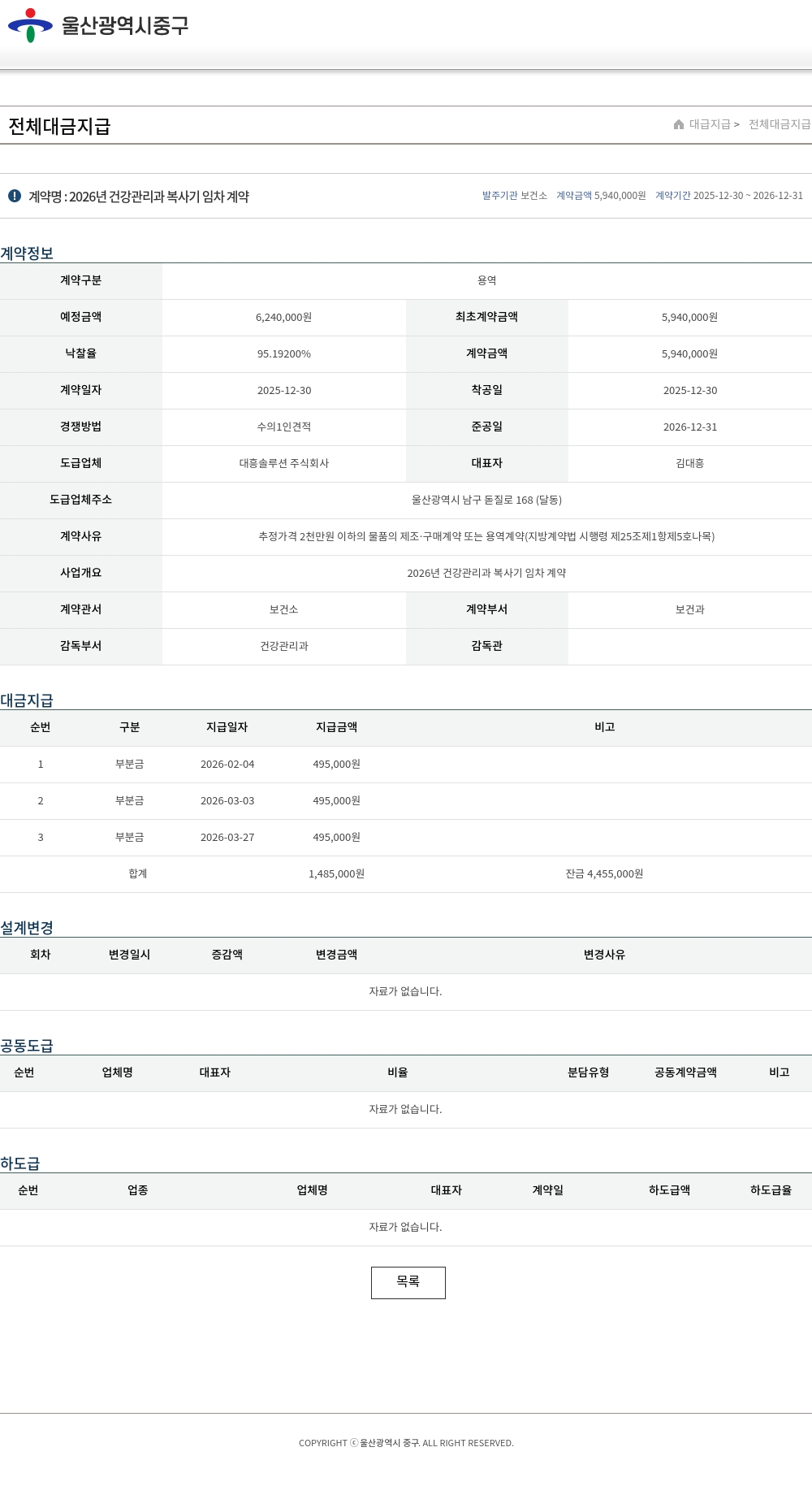 | 예정금액 | 6,240,000원 | 최초계약금액 | 5,940,000원 |